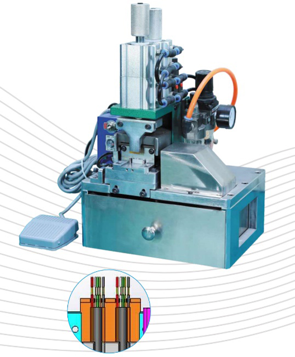 Wire stripping machine is uniquely designed to remove external insulation from data cables.